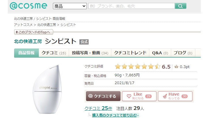 アットコスメでの評価7段階中6.5